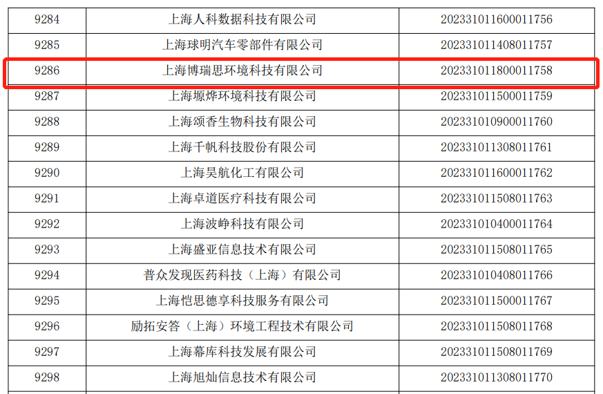 | 喜報 | 上海博瑞思環(huán)境科技有限公司入庫2023年度第二批科技型中小企業(yè)! | ||