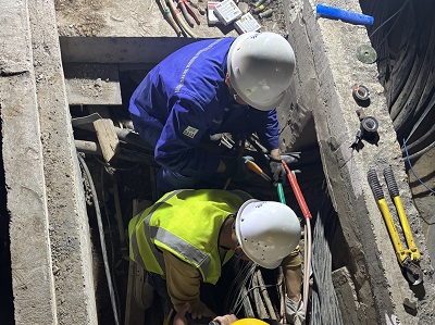 “迅速啟動夜間應(yīng)急響應(yīng)” 近日,皂河、黃墩、王官集三個鄉(xiāng)鎮(zhèn)DN500供水主管網(wǎng)壓力異常,情況緊急,公司迅速啟動夜間應(yīng)急響應(yīng)機制,由管網(wǎng)部總監(jiān)劉朗牽頭,帶隊支援皂河區(qū)域供水服務(wù)中心,一支由20余人組成的聯(lián)合巡線搶修隊快速集結(jié),在深夜展開了一場與時間賽跑的搶修戰(zhàn)。凌晨00:30,搶修隊在一處施工場地圍擋內(nèi)發(fā)現(xiàn)了漏點,漏點較為隱蔽,且漏水量大。為盡可能縮短停水時間、減少水量損失,搶修人員迅速制定了維修方案,采用同步作業(yè)模式,機械開挖與人工清淤交替進行,確保作業(yè)高效推進。從發(fā)現(xiàn)漏點到完成受損管段維修,僅用4個小時。凌晨04:30,供水系統(tǒng)全面恢復(fù),高峰期用戶的正常用水得到有力保障。