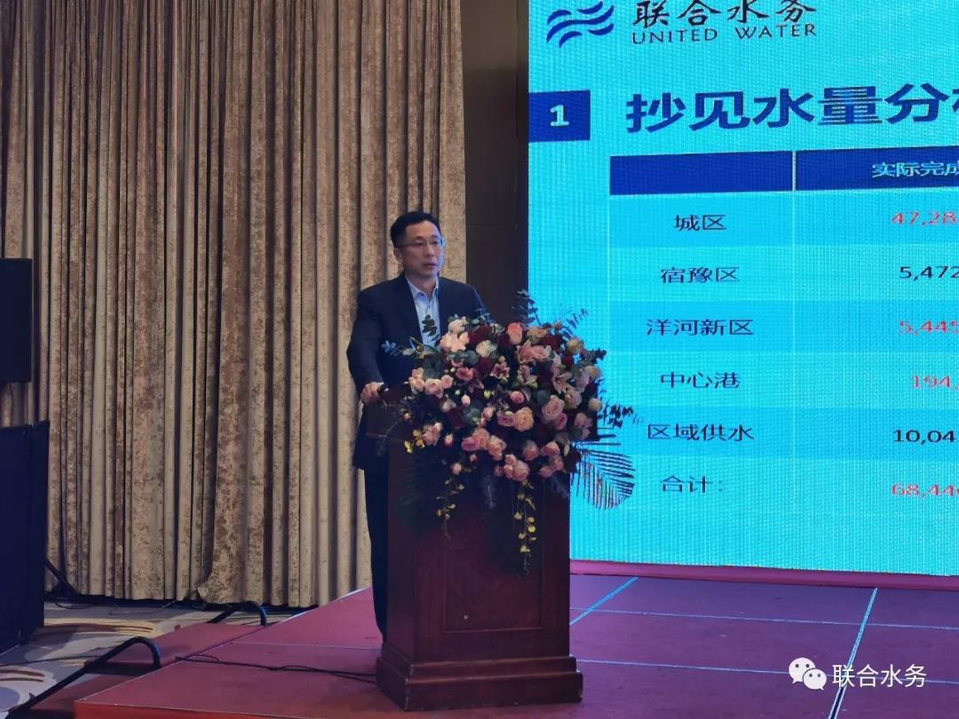 回首過去,砥礪奮進創(chuàng)佳績;展望未來,戮力同心鑄輝煌。2020年1月17日下午,聯(lián)合水務(wù)集團宿遷公司,在宿遷恒力國際大酒店隆重召開2019年度工作總結(jié)暨表彰大會,全面總結(jié)回顧過去一年取得的成績和經(jīng)驗,安排部署2020年工作計劃。聯(lián)合水務(wù)集團高級副總裁劉猛先生、總裁助理兼財務(wù)部總經(jīng)理陳國清先生、運營管理中心總經(jīng)理王歡先生、采購總監(jiān)曹雷先生、人力資源招聘與培訓經(jīng)理黃晨先生親臨大會現(xiàn)場,宿遷公司主管以上管理人員、先進員工及員工代表共計98人參加了會議。宿遷銀控自來水有限公司人力資源行政副總經(jīng)理陳少軍主持會議。