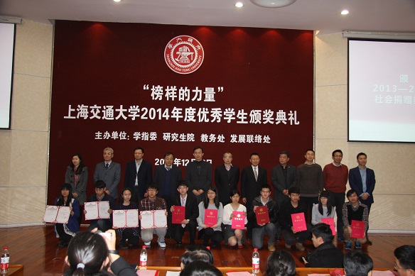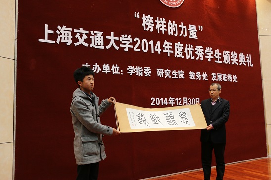 2014年12月30日下午,“榜樣的力量”——上海交通大學(xué)2014年度優(yōu)秀學(xué)生頒獎(jiǎng)典禮在交大閔行校區(qū)陳瑞球樓報(bào)告廳舉行。上海交通大學(xué)黨委書記姜斯憲、黨委副書記朱健、副校長(zhǎng)張安勝、副校長(zhǎng)徐學(xué)敏,知名教授劉西拉、俞勇、李亦中、施索華,各院系單位負(fù)責(zé)人、設(shè)獎(jiǎng)單位代表及部分學(xué)生代表出席了會(huì)議。聯(lián)合水務(wù)集團(tuán)董事長(zhǎng)兼總裁俞偉景及其他捐贈(zèng)方負(fù)責(zé)人共同出席并為捐贈(zèng)獎(jiǎng)學(xué)金的獲獎(jiǎng)?wù)哌M(jìn)行頒獎(jiǎng)。 2014年6月,聯(lián)合水務(wù)集團(tuán)出資壹佰萬(wàn)元人民幣,在交大設(shè)立了“上海交通大學(xué)聯(lián)合水務(wù)獎(jiǎng)學(xué)金”,用于獎(jiǎng)勵(lì)在思想政治上追求上進(jìn)、成績(jī)優(yōu)秀、積極組織和參加學(xué)校社會(huì)活動(dòng)與公益活動(dòng)、在學(xué)校和學(xué)生中有積極影響的優(yōu)秀學(xué)生。今年共有來(lái)自環(huán)境科學(xué)與工程學(xué)院、機(jī)械與動(dòng)力工程學(xué)院、安泰經(jīng)濟(jì)與管理學(xué)院、致遠(yuǎn)學(xué)院的14名學(xué)生獲得了該項(xiàng)獎(jiǎng)學(xué)金。 為表達(dá)對(duì)設(shè)獎(jiǎng)企業(yè)的感謝,書畫篆刻協(xié)會(huì)焦點(diǎn)同學(xué)代表獲獎(jiǎng)?wù)呦蛴醾ゾ跋壬?zèng)送了他自行創(chuàng)作的書法作品《思源·致遠(yuǎn)》。俞總作為捐贈(zèng)獎(jiǎng)學(xué)金單位的代表向大會(huì)致辭,他表示作為交大人,很高興能有機(jī)會(huì)回饋母校。聯(lián)合水務(wù)會(huì)以獎(jiǎng)學(xué)金方式支持、資助優(yōu)秀學(xué)生的發(fā)展,為他們優(yōu)先提供社會(huì)實(shí)踐、實(shí)習(xí)、課題調(diào)研的便利與畢業(yè)后的工作機(jī)會(huì)。最后,他勉勵(lì)廣大學(xué)子銘記“飲水思源”校訓(xùn),敢于夢(mèng)想、勤于學(xué)習(xí)、勇于實(shí)踐,將個(gè)人的前途和命運(yùn)與國(guó)家富強(qiáng)、民族振興緊密相聯(lián)系起來(lái),做對(duì)社會(huì)、對(duì)祖國(guó)有用的棟梁之才。俞總的講話鼓舞了全場(chǎng)的學(xué)生,贏得了大家熱烈的掌聲。 整個(gè)頒獎(jiǎng)儀式由“感恩”、“責(zé)任”、“超越”三個(gè)主題篇章組成,每個(gè)篇章有獲獎(jiǎng)學(xué)生代表發(fā)表主題微演講,并由獎(jiǎng)學(xué)金捐贈(zèng)方、校領(lǐng)導(dǎo)為獲獎(jiǎng)學(xué)生頒獎(jiǎng)。最后,由校黨委書記姜斯憲先生總結(jié)發(fā)言,他代表學(xué)校,向獲得各類獎(jiǎng)項(xiàng)并受到表彰的同學(xué)們表示祝賀,向一直以來(lái)辛勤耕耘、潛心育人的老師們致以敬意,向長(zhǎng)期關(guān)心和支持交大發(fā)展的社會(huì)熱心人士表示感謝。 聯(lián)合水務(wù)出資捐贈(zèng)上海交通大學(xué),是聯(lián)合水務(wù)集團(tuán)投身公益事業(yè)、支持中國(guó)教育事業(yè)的重要舉措之一。聯(lián)合水務(wù)自2003年在中國(guó)水務(wù)行業(yè)開創(chuàng)事業(yè)以來(lái),歷經(jīng)十余年的發(fā)展,已經(jīng)在全國(guó)各地?fù)碛惺鄠(gè)水務(wù)項(xiàng)目,日處理規(guī)模逾130萬(wàn)噸,事業(yè)進(jìn)入了蓬勃發(fā)展階段。上海交通大學(xué),作為中國(guó)最著名的高等學(xué)府之一,培養(yǎng)出了一批批的優(yōu)秀人才,聯(lián)合水務(wù)通過(guò)獎(jiǎng)學(xué)金捐贈(zèng)支持上海交通大學(xué)培養(yǎng)出更多、更優(yōu)秀的人才。 聯(lián)合水務(wù)將會(huì)兌現(xiàn)承諾,持續(xù)支持交大的人才培養(yǎng);并與交大攜手,校企合作,為人才發(fā)展提供廣闊的發(fā)展舞臺(tái)!