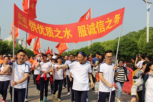 4月15日上午,咸寧聯(lián)合水務(wù)有限公司組織30名員工,在人事行政副總經(jīng)理張偉華的帶領(lǐng)下參加咸寧城區(qū)第28屆春季健步跑暨2017咸寧微型馬拉松賽活動。 上午9時,陽光明媚,微風和煦,起跑點人潮洶涌,氣氛熱烈,公司旗手高舉“供優(yōu)質(zhì)之水,服誠信之務(wù)”和“咸寧聯(lián)合水務(wù)有限公司”的旗幟組成方陣整裝待發(fā)。隨著主持人一聲令下,各參賽者朝著終點方向次第前行,開始長達5公里的快樂健身賽跑。 參加活動的員工,平時工作都是在辦公室里忙碌,沒有多少時間跑步健身,有的年紀已過中年,身體素質(zhì)下滑,所以開跑不大一會,疲勞感陣陣襲來,拉起了風箱,感覺難以繼續(xù)下去了,但大家在高高飄揚的“咸寧聯(lián)合水務(wù)有限公司”旗幟帶領(lǐng)下,以極高的精神意志力,克服身體的疲累咬牙前行,在開跑半個小時左右,大家都按賽跑路線順利到達終點,沒有一人掉隊。 此次活動不僅是身體上的考驗,更是心理上的考驗,它給我們的感受遠比成績要豐富的多,體現(xiàn)了咸寧聯(lián)合水務(wù)人努力拚搏、誓不服輸?shù)倪\動精神,展示了聯(lián)合水務(wù)人的昂揚士氣與蓬勃活力。