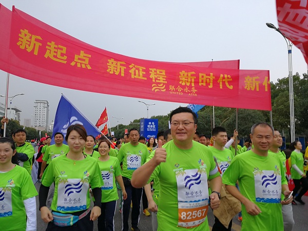11月11日上午8點(diǎn),2017年咸寧國(guó)際溫泉馬拉松賽在咸寧市人民廣場(chǎng)鳴槍開(kāi)跑,本次活動(dòng)吸引了全世界的1.2萬(wàn)人參加,聯(lián)合水務(wù)集團(tuán)副總裁劉猛、陳樵、James Beeson先生及旗下6個(gè)項(xiàng)目公司的63名參賽隊(duì)員匯集香城泉都,代表聯(lián)合水務(wù)傾情助力本次馬拉松大賽。 當(dāng)天7:20,集團(tuán)63名參賽人員和咸寧公司70名啦啦隊(duì)和服務(wù)人員,在起點(diǎn)人民廣場(chǎng)集中,高舉“新起點(diǎn)、新征程、新時(shí)代、新作為”、“聯(lián)合水務(wù),服務(wù)咸寧”的橫幅,大家步伐整齊,揮舞彩旗,方陣格外引人注目,為本屆馬拉松賽事增添了一抹亮麗的風(fēng)景。